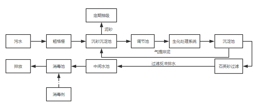 針對工廠的生活污水回用,主要側重于景觀水以及沖廁、綠化用水等。一般來說生活污水處理工藝機理如下:生物膜法一般用于水量較小,水質較為穩定,濃度不是很高的低濃度污水,同時由于生物膜培養較快(一般夏天為3-7天,冬天為10-15天),系統調試好后運行穩定,可操作性較強,對操作人員的要求較低;活性污泥法一般用于水量較大,水質有一定的波動,中等濃度或高濃度水質,同時由于活性污泥培養時間較長(一般需要30天左右),系統運行中操作管理較繁,對操作人員有一定的要求,適用于大中型污水處理項目,如城市污水處理廠。一般來說生化處理工藝(缺氧+好氧)采用生物膜法處理工藝。生物膜法處理之后后續處理一般做深度處理,主要是去除殘余的懸浮物以及后續的水質消毒。